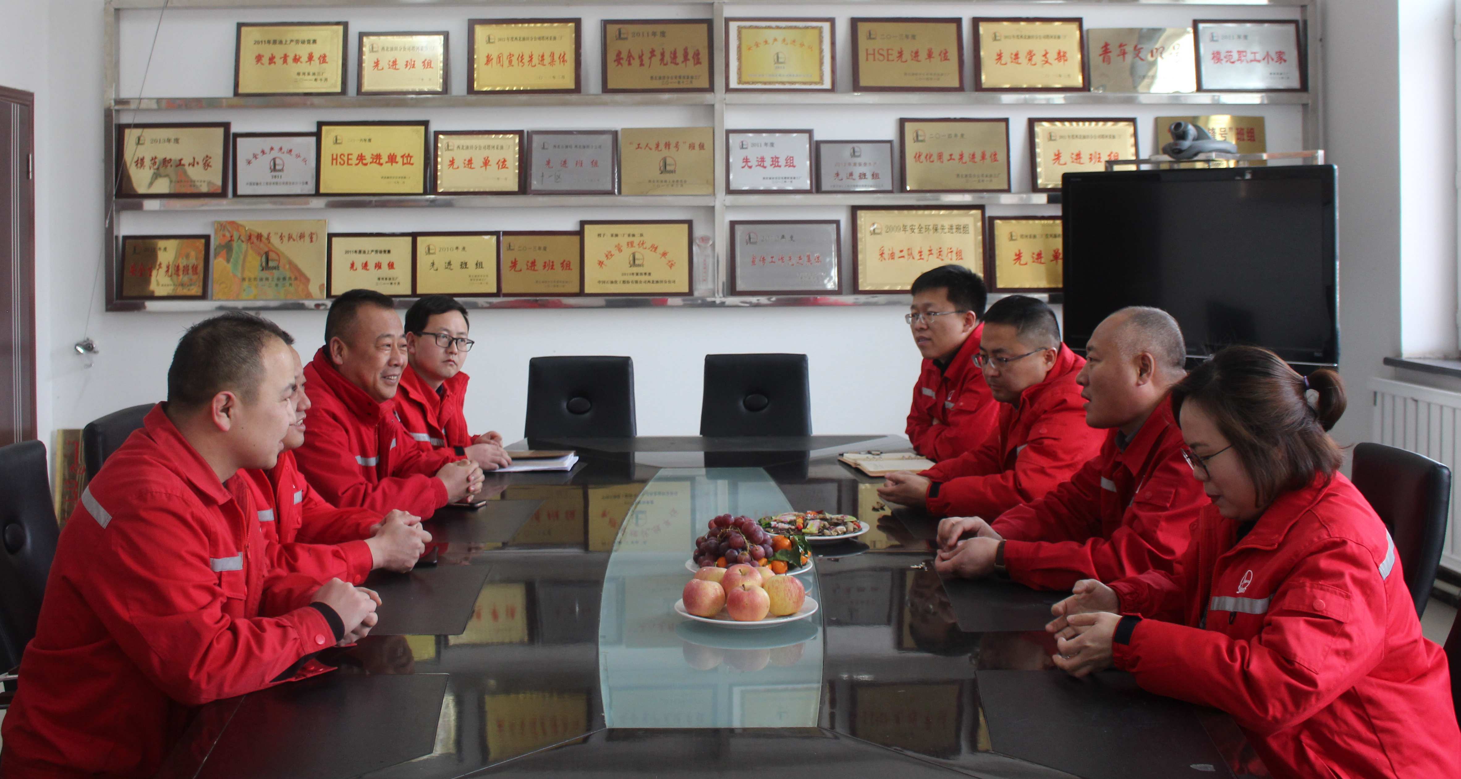 (南疆事業(yè)部向到訪的采油三廠領(lǐng)導(dǎo)匯報節(jié)日期間安全生產(chǎn)工作部署)